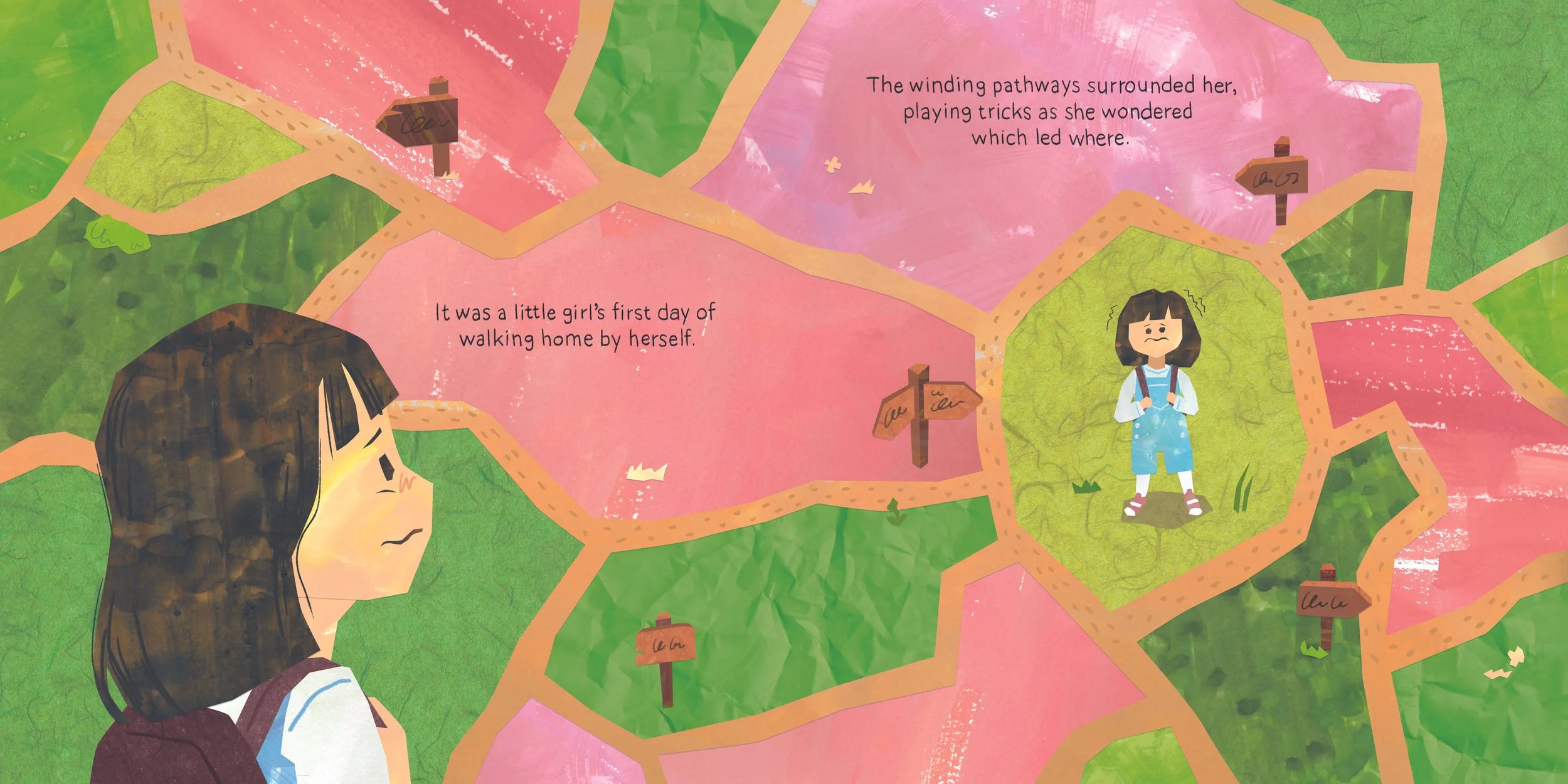 A little girl is trying to find her home in a maze of woods. Who will tell her which way is the right way?